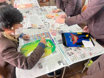 5年生は、図工で掲示板作りをしていました。丁寧に色付けをしたり、ニスを塗ったり真剣に取り組んでいました。