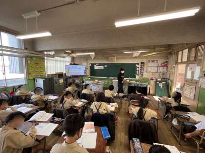 3年生は社会の学習です。交通事故を防ぐために自分たちにできることをグループで話し合って、発表しました。子どもたちから具体的な提案がどんどん出されました。