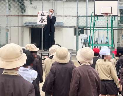 全校朝会では、校長先生から、「立春」と「節分」の話がありました。暦の上では、春ですが、まだまだ寒い日が続きます。風邪等も流行する時期です。体調管理に気をつけましょう。