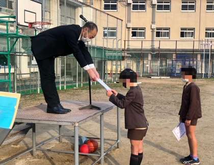 その後、大阪市教育研究会の図工展で優秀な成績を収めた子どもたちの表彰を行いました。