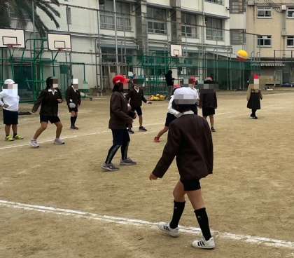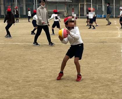 3年生と4年生が合同でドッジボールをしていました。4年生は、3年生にやさしくしながら、楽しむ姿が見られました。