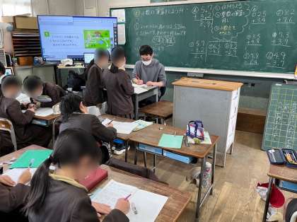 3年生は算数科の学習です。小数の筆算の練習をしました。位をそろえて整数の時と同じように計算します。ひっ算ができたら、先生にチェックしてもらいました。