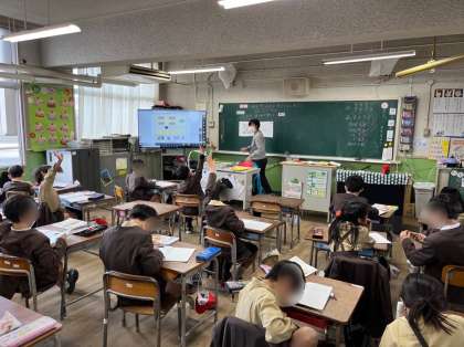 2年生は算数の学習です。100を24集めた数について考えました。「100は10こで1000だから・・・」子どもたちはこれまでの学習を振り返り、いくつか数えることができました。