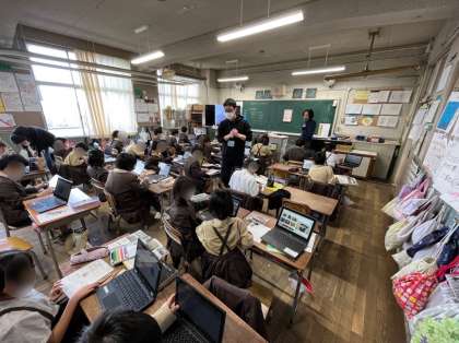 3年生は社会の学習です。昔の道具について、学習端末で情報を収集し、その道具の使用目的や使用方法についてカードにまとめました。