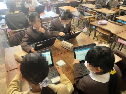 3年生は「外国のことを紹介しよう」ということで、タブレットも活用しながらどういう内容を紹介しようかグループで話し合いながら、学習していました。