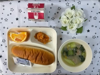 給食の中華がゆは、米のほかに、肉だんご・だいこん・チンゲンサイ・にんじん・しいたけを加えて作ります。塩、うすくちしょうゆ、チキンブイヨンで味つけし、仕上げにごま油で風味をつけています。