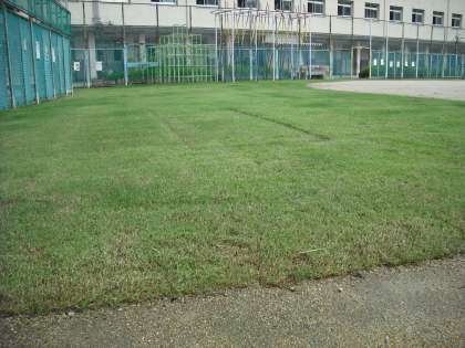 7月にみんなで植えた芝生が根付いて青々とそだった