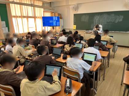 6年生は学級活動で学級目標を考えています。学習端末を使ってどんな目標がいいかをそれぞれで考え、学級全体で共有していきました。