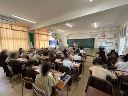 5年生は算数の学習です。算数の学習の仕方について先生から教えてもらった後、4年生の復習問題に取り組みました。