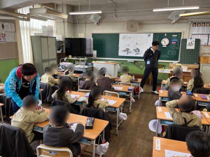 1年生は、国語の学習です。えんぴつを持って線をなぞる練習をしました。上手になぞれると子どもたちは大喜びです。