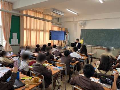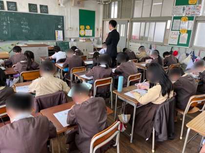 6年生は社会の学習です。映像を見ながら日本国憲法にはどのような考え方があるのかについて考えました。