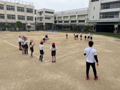 5年生は体育の学習でリバーシブルというゲームをしました。チームで協力してパネルを裏返しました。