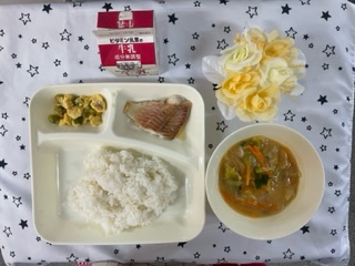 今日は、給食室で「さや」から取り出した「生のえんどう」を使っています。