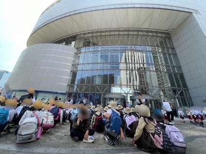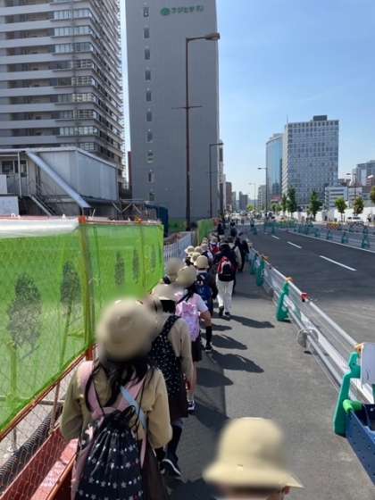 4年生は春の遠足に出発です。道中、交通マナーをしっかり守って、大阪市立科学館に到着しました。これから館内を見学します。
