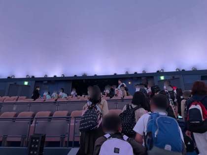 まずは、プラネタリウムにて星空の鑑賞です。大阪では小さな星まではなかなか見えませんが、プラネタリウムに映し出された星はたくさんあって、その多さに驚きました。星空が投影されると、子どもたちから拍手が起こりました。