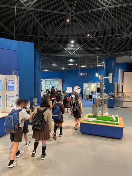 次に展示エリアに移動し、いろいろな科学実験の展示物を実際手に触れて体験しました。自然の力は、色々なことに工夫され、活用されていることに気づきました。