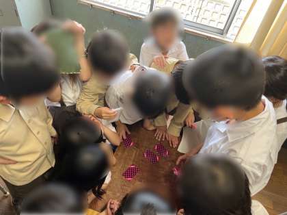 3年生は学級活動です。今日はマジック係がマジックを披露してくれました。トランプを使ってマジックをするとみんなが一同に注目し、成功すると大きな歓声が上がりました。