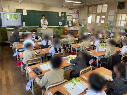 1年生は国語科でひらがなの学習です。濁点や半濁点の付いた言葉を集めました。みんな身近なものの中から、たくさん言葉をみつけて、元気よく発表できました。