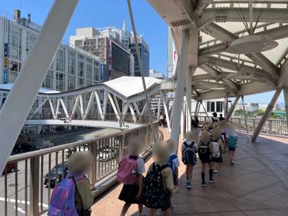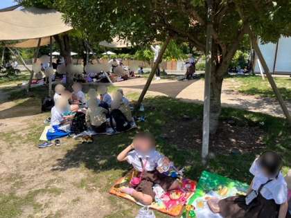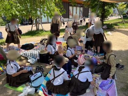 ハルカスの展望台から「てんしば」(天王寺公園)に移動して、おまちかねのお弁当タイムです。お友だちと外で食べるお弁当は最高ですね!