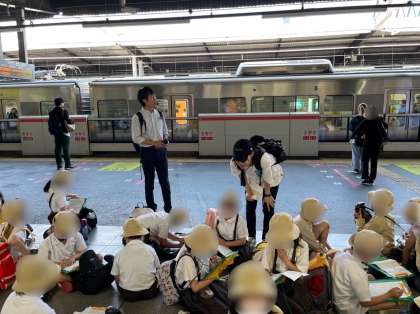 てんしばを後にして、再び環状線に乗りました。今度は鶴橋、大阪経由で西九条まで戻り、19の駅からなる環状線を一周します。子どもたちは、途中の駅で下車しながら、その駅の様子などをメモしました。