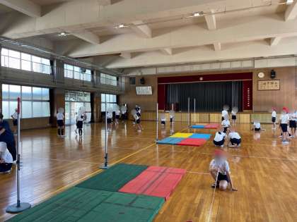 6年生は、走り高跳びの学習でした。最後の3歩を意識しながら、ゴム跳びで、振り上げ足と抜き足の感覚をつかみます。力強く、リズミカルに跳べるようになって、記録を伸ばしていこう!
