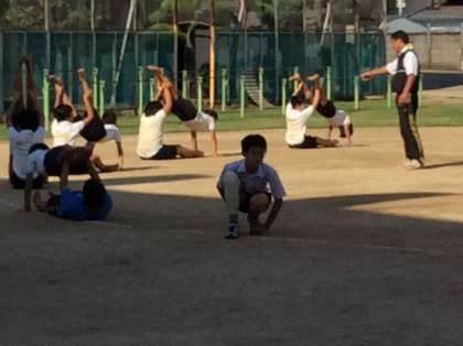 校長先生が朝の朝礼で若いころのお話をしてた。