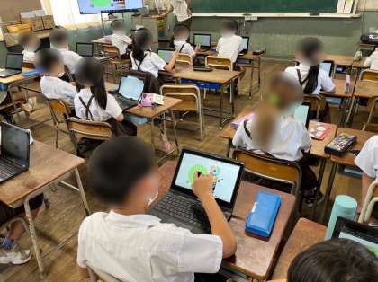 3年2組は、総合の時間にビスケットというプログラミングのソフトを使い方を学習しました。キャラクターの動き方や、背景の色遣いなどを入力していきました。