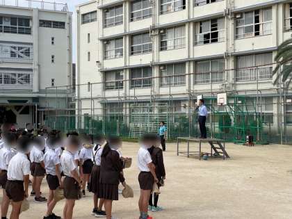 児童朝会で、校長先生からは、「いじめ・いのちについて考える日から2週間がたちますが、友だちを大切にできていますか。」と、問いかけがありました。学校安心ルールや、友だちへの言葉がけのしかたについての話をされました。学校生活を振り返り、もう一度友だちとの関わりについて考えるきっかけになってほしいと思います。