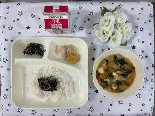 魚ひじきそぼろは、魚ミンチとひじき、しそをいためて作ります。また、ごはんに合うように、あまからく味つけし、しそを加えて、香りと風味をましています。