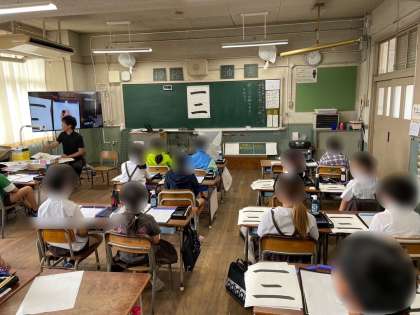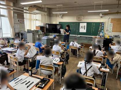書写の学習では、3年生から毛筆の練習をします。これまで、道具の使い方や置く位置を確かめ、筆の持ち方も教わりました。まずは、簡単な漢字から練習していきます。子どもたちは、気持ちを整えて丁寧に書くことができました。