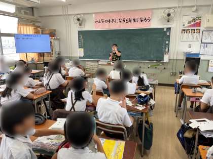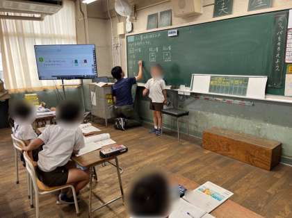 3年生は算数の学習です。10倍した数、10でわった数について考えています。十倍するとどうなるかについて、自分の考えを発表しました。