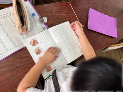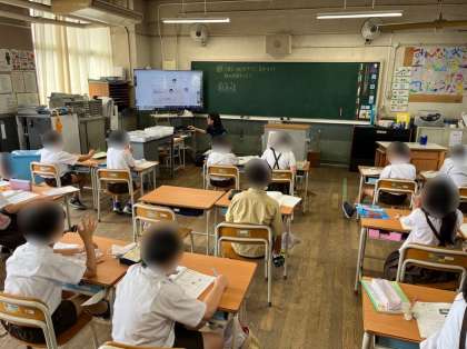 4年生は国語の学習です。説明文「ヤドカリとイソギンチャク」について、この文章を「はじめ」「中」「終わり」に分けました。分けた後は友だちと自分が分けた理由を交流しました。序論(問題提起)、本論(筆者の考え)、結論(考えのまとめ)で分けるとすっきりしますね。