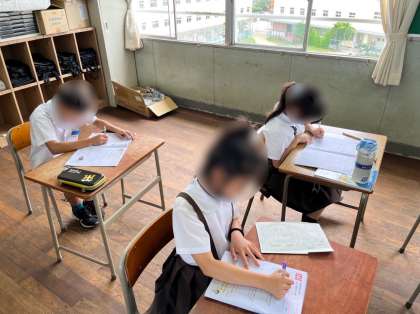5年生は算数の学習です。これまで学習してきた「小数のかけ算」のまとめをしています。個別に練習問題に取り組み、これまでの学習内容がしっかり身についているか確かめていきました。