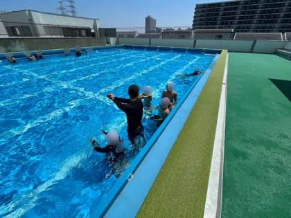 5年生はプール水泳の時間です。これまではクロールを重点的に練習してきましたが、今回は平泳ぎの学習です。平泳ぎは左右対称の動きをします。手や足の動かし方を先生に教わりながら練習しました。