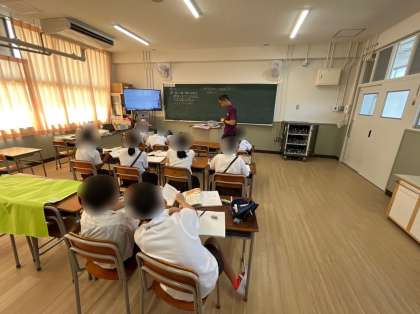 4年生は算数の学習です。垂直と平行について、方眼紙に引いた直線を見ながら、垂直・平行な直線を探していきました。コツがわかれば、子どもたちはどんどん垂直・平行を見つけることができました。