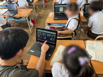 1年生はICT支援員の方に協力していただき、学習端末のGoogle meetを使った接続をしました。画面に友だちの顔が映ると子どもたちは大喜びです。個人懇談期間中は各家庭でも接続テストのご協力をお願いします。