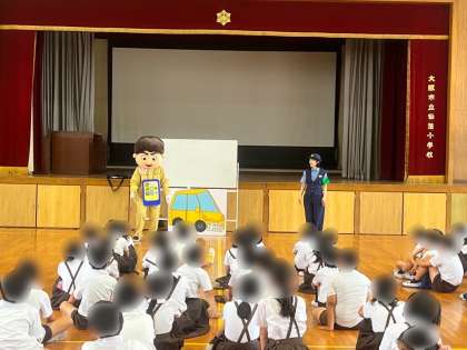 本日、此花警察署の方に来ていただき、全校児童を対象に防犯教室が行われました。もうすぐ楽しい夏休みが始まりますが、夏休みは楽しいだけではなく、危険もたくさんあります。不審者に出会った時、どのように行動すればよいか、また、高学年はネット犯罪に巻き込まれないために気を付けることについても教わりました。