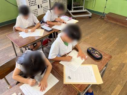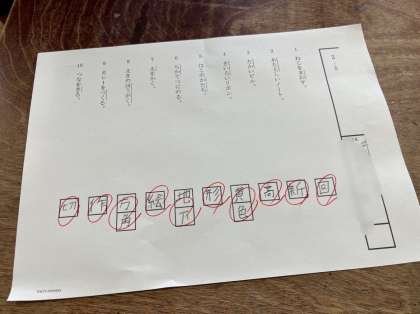 今日は2年生がでんでん漢字検定を行いました。これまで学習した漢字の力試しに子どもたちは一生懸命取り組みました。一枚でも多く取り組むために、急いで採点に来て、新しいプリントを取りに行く姿にとても意欲を感じました。この調子でどんどん学んでください。