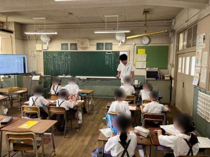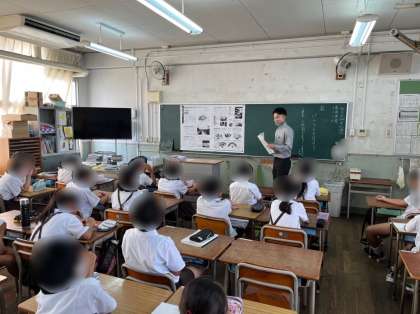 6年生は理科の「空気や水を通した生物のつながり」の学習をしています。植物も動物も、生きていくためには空気や水が必要です。今日は、動物や植物は水と空気とどのように関わり合っているかについて意見を交流しました。