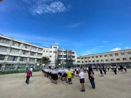 2学期最初の児童朝会でした。校長先生からは、熱中症の予防ということで、水分補給はもちろん、食事や睡眠にも気をつけて元気に過ごしましょうとお話がありました。運動会の練習も始まりますので、学校でも十分気をつけていきたいと思います。