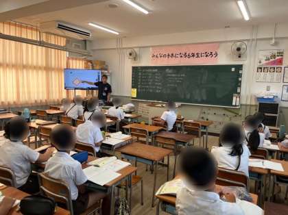 3年2組は国語の学習です。季節の足音という単元で「たんぽぽ」「いるか」という詩を音読しました。同じ言葉が何度も出てきますが、どのように工夫して読むかを考えました。