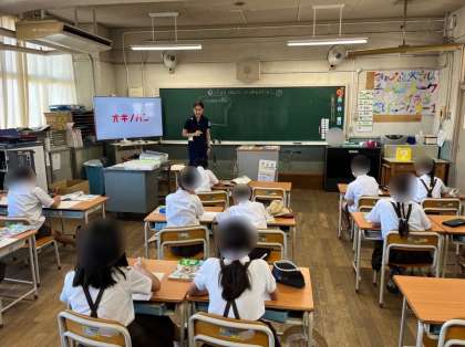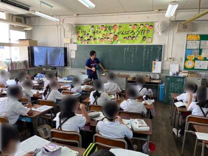 4年生は国語の学習です。「学校についてしょうかいすることを考えよう」の単元で運動会のスローガンについて意見を出し合いました。まず、イメージマップで運動会から連想することを集め、その中からスローガンに相応しい言葉とその理由について交流しました。