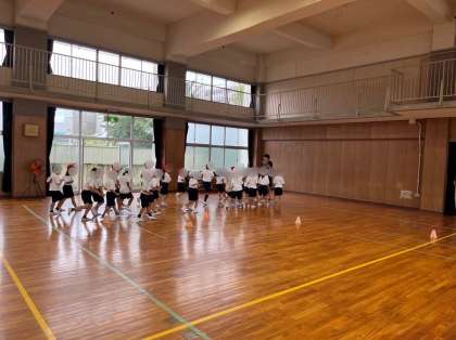 1年生は体育の学習です。個人走の入退場を練習しました。自分の場所を確認したり、並んでかけ足で入場したり気をつけることはたくさんありますが、上手にできました。