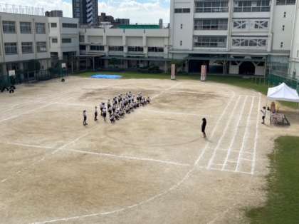 4年生は体育の学習です。表現運動の練習も終盤です。一通りの動きや隊形移動ができるようになりました。今日は細かい動きに磨きをかけたり、声を出すところを確認していきました。4年生の元気な声が運動場に響いていました。