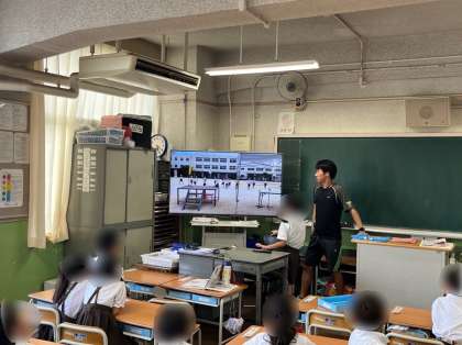 1年生は、生活の時間です。運動会の練習の映像を見ながら、自分の姿や位置について確認しました。自分の姿を俯瞰して見ることで、良いところやがんばるところが確認できました。