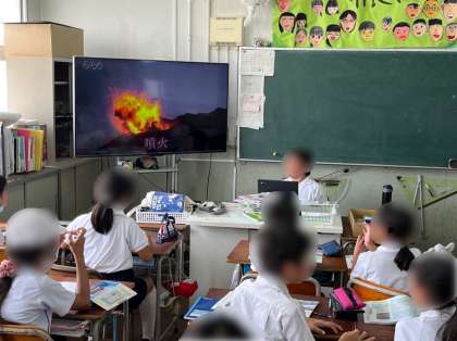 4年生は社会の学習です。自然災害について調べてきてくれた児童が学級で発表してくれました。学習端末で動画を映しながら説明していたので、聞いているお友だちもわかりやすかったと思います。
