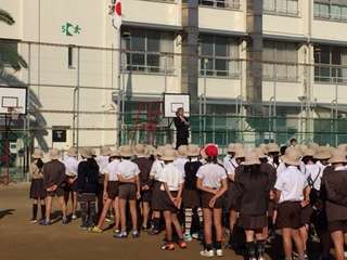 昨日が体育の日でお休みだったので、今日、児童朝会がありました。