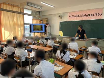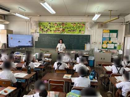 5年生は総合学習で2025年に開催される大阪万博と関連したSDG'Sの学習を進めています。万博のテーマである「いのち輝く未来社会のデザイン」について、グループになって「どんなときにいのちが輝くのか」話し合いました。