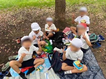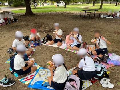 お待ちかねのお弁当タイムです。遠足で食べるお弁当は格別ですね!