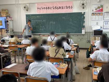 5年生は、外国語活動でした。先生が家ですることを子どもたちが「Do you〜?」を使って英語でたずねる活動です。先生は、「never」や「some times」、「usually」、「always」等を使って答えます。みんな積極的に参加していましたね。